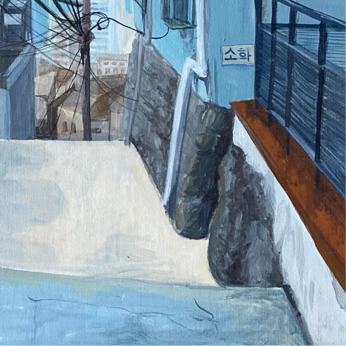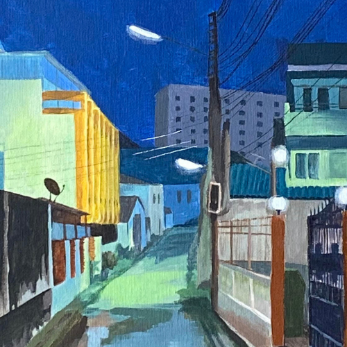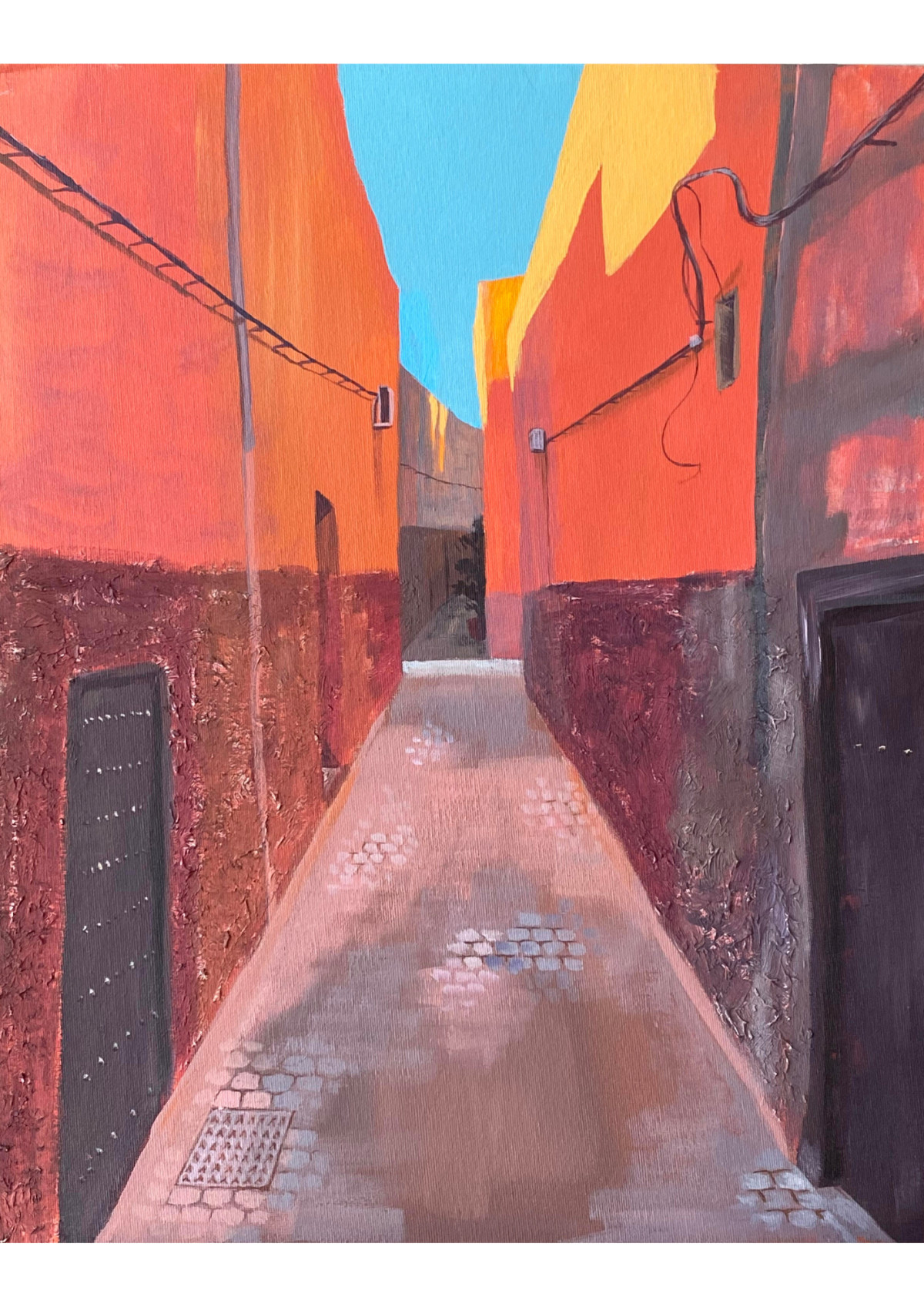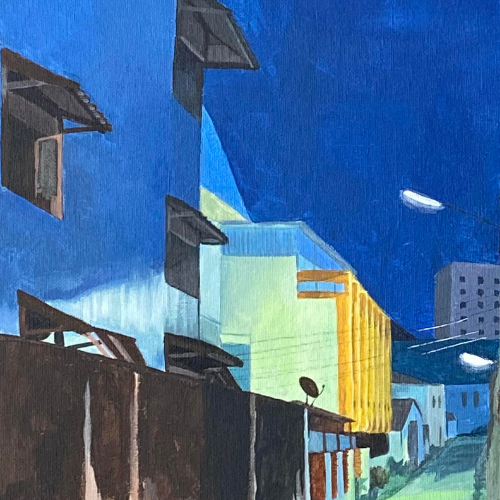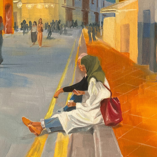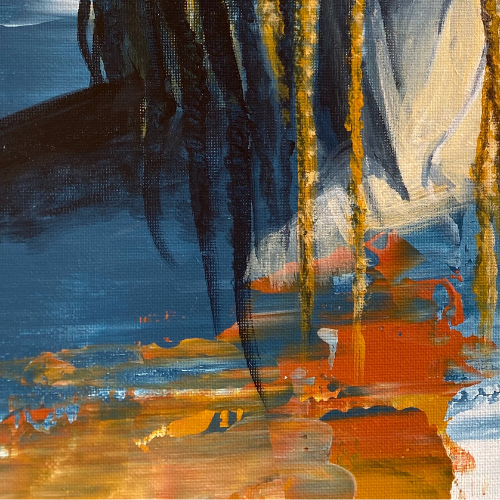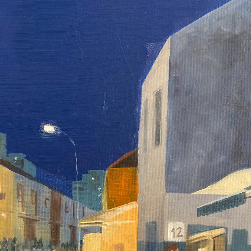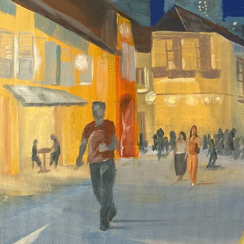 Je peins à l’acrylique et à l’huile, sur toile ou carton toilé. Mes œuvres naissent de ce qui capte mon regard : un jeu de lumière, un détail fugace, une atmosphère, qu’elle soit issue de mes voyages ou de mon quotidien.